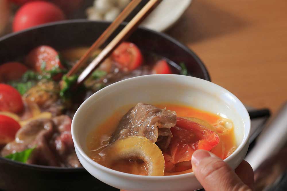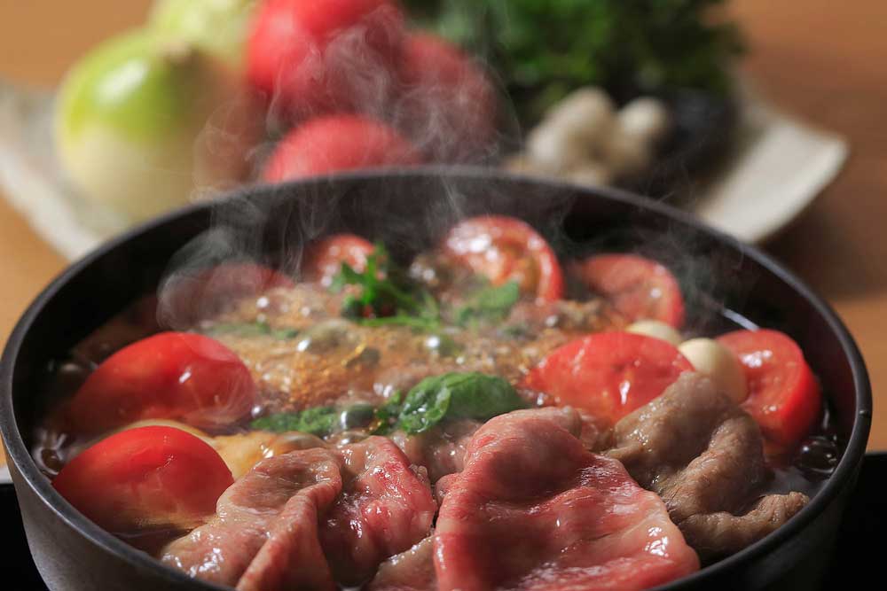 期間限定『トマトすき焼』のご案内 2022年4月16日 最終更新日時 : 2023年1月13日 keizu お食事2022年4月16日期間限定『トマトすき焼』のご案内 福島産のトマトと厳選黒毛和牛を使用した、バジル香る爽やかな「トマトすき焼」です。甘みと酸味のバランスが絶妙な県産トマトが、黒毛和牛の旨味・甘味をさらに引き立てます。玉ねぎやバジル、モッツァレラチーズとの相性も抜群です。この時期に、京香の「トマトすき焼」を是非ご賞味くださいませ。 ■期間限定 トマトすき焼 【期間】~8月10日【料金】トマトすき焼コース 8,800円トマトすき焼コース 11,000円トマトすき焼おまかせコース 13,200円 ※サービス料(10%)別途頂戴いたします。※ご予約は二日前までにお願いいたします。 この記事をSNSシェア!