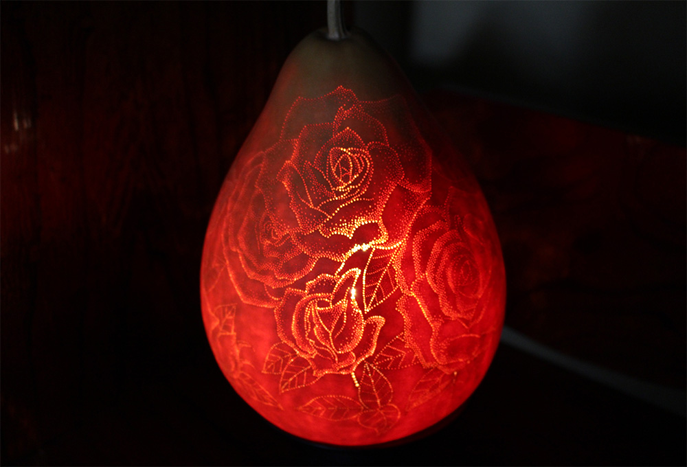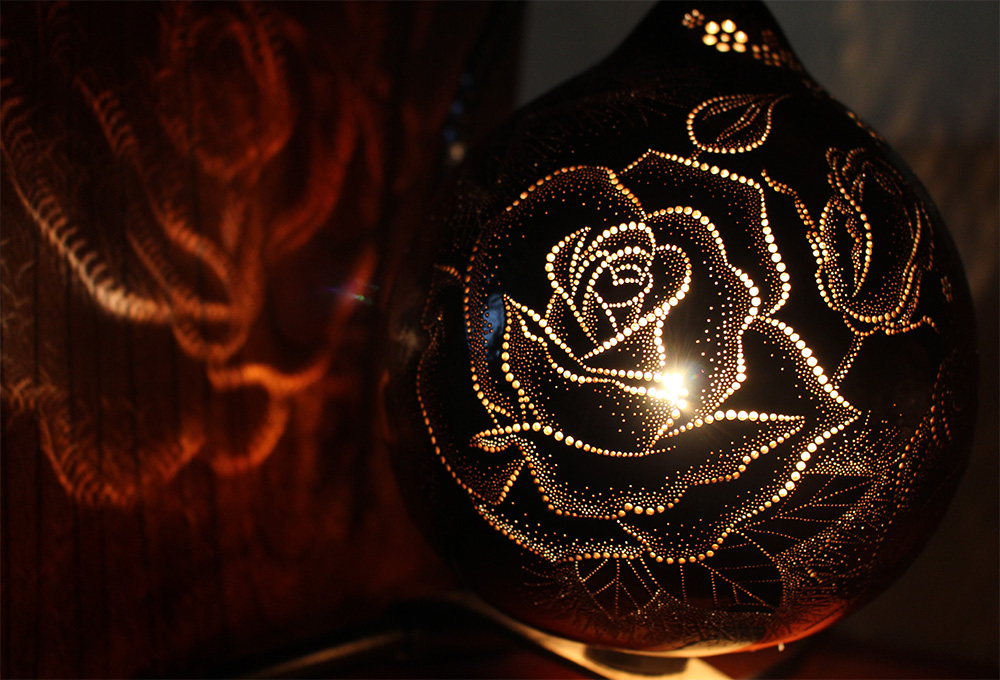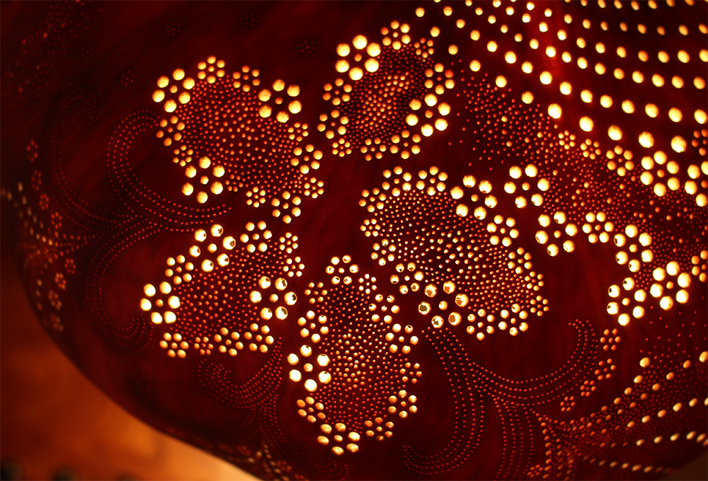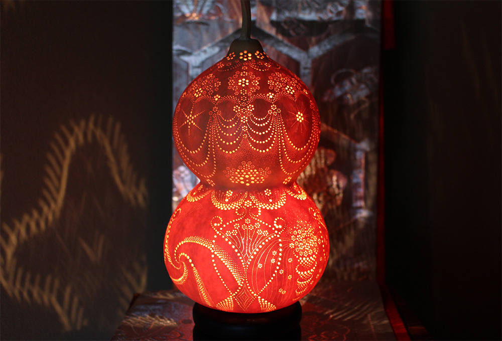 宇佐美氏が手掛ける瓢箪ランプの光は、どこまでも優しく暖かく、そして何より、空間に与える光の力に魅了される。